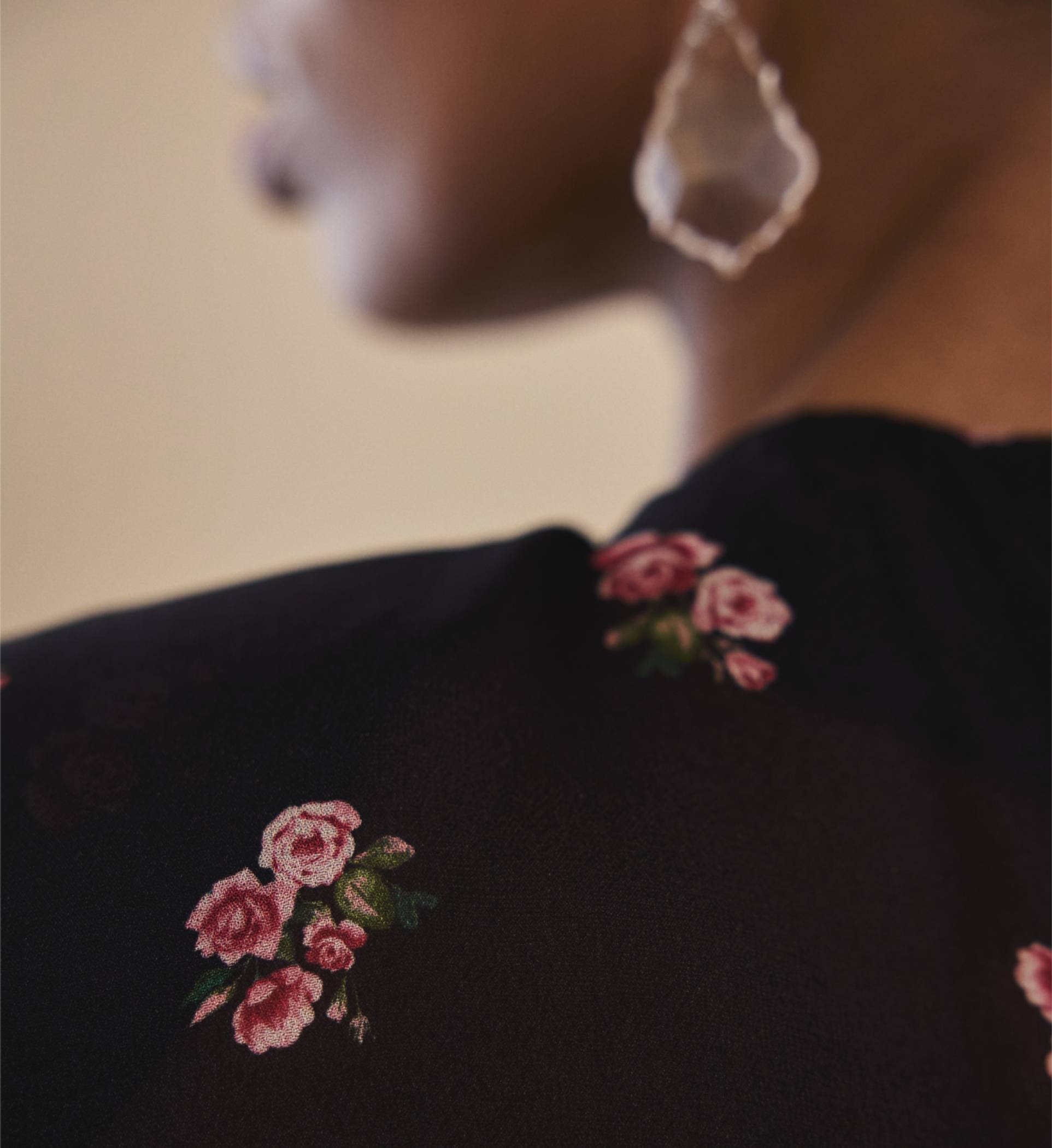 The cropped blouse with short sleeves made of viscose chiffon with floral print.