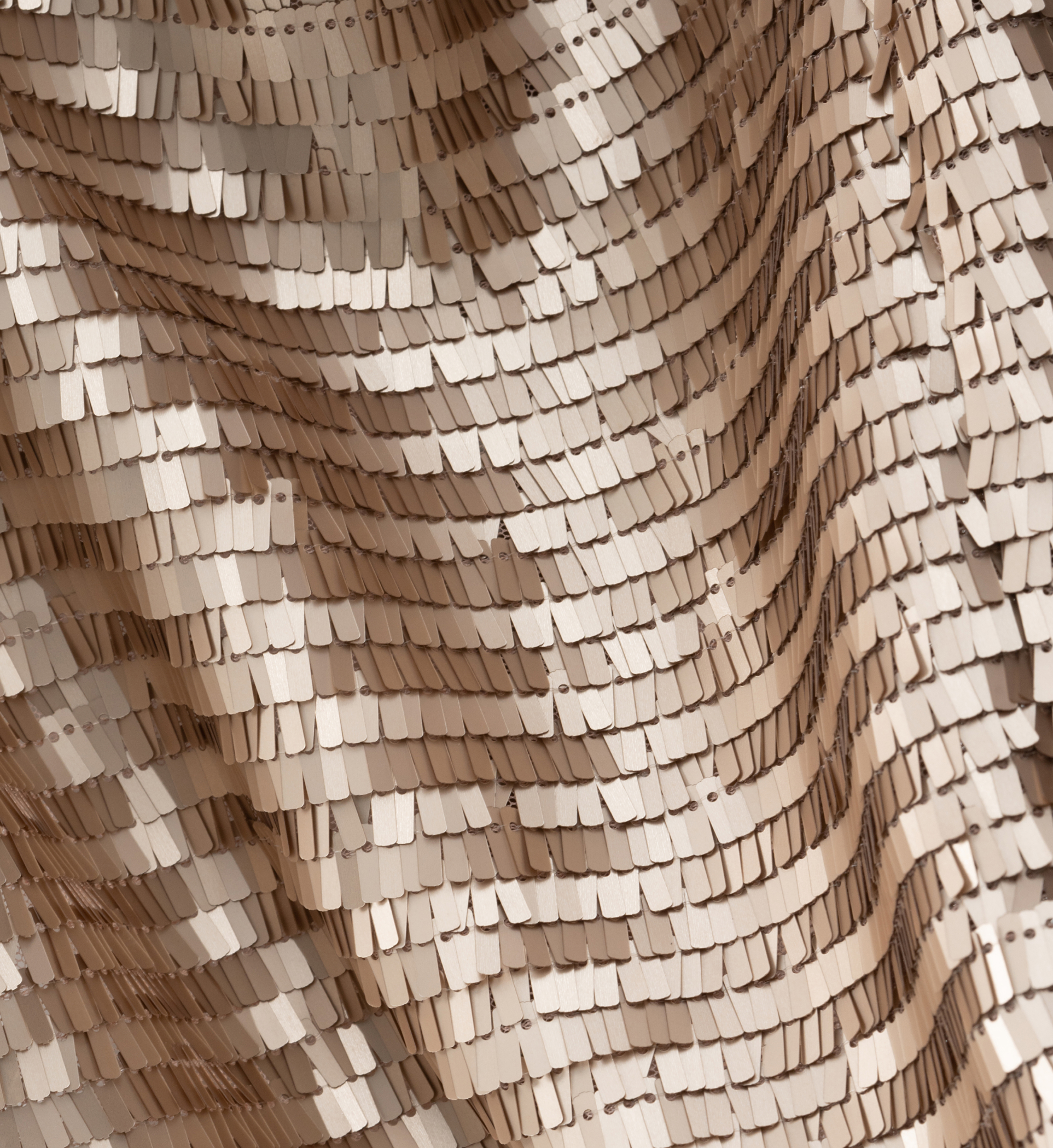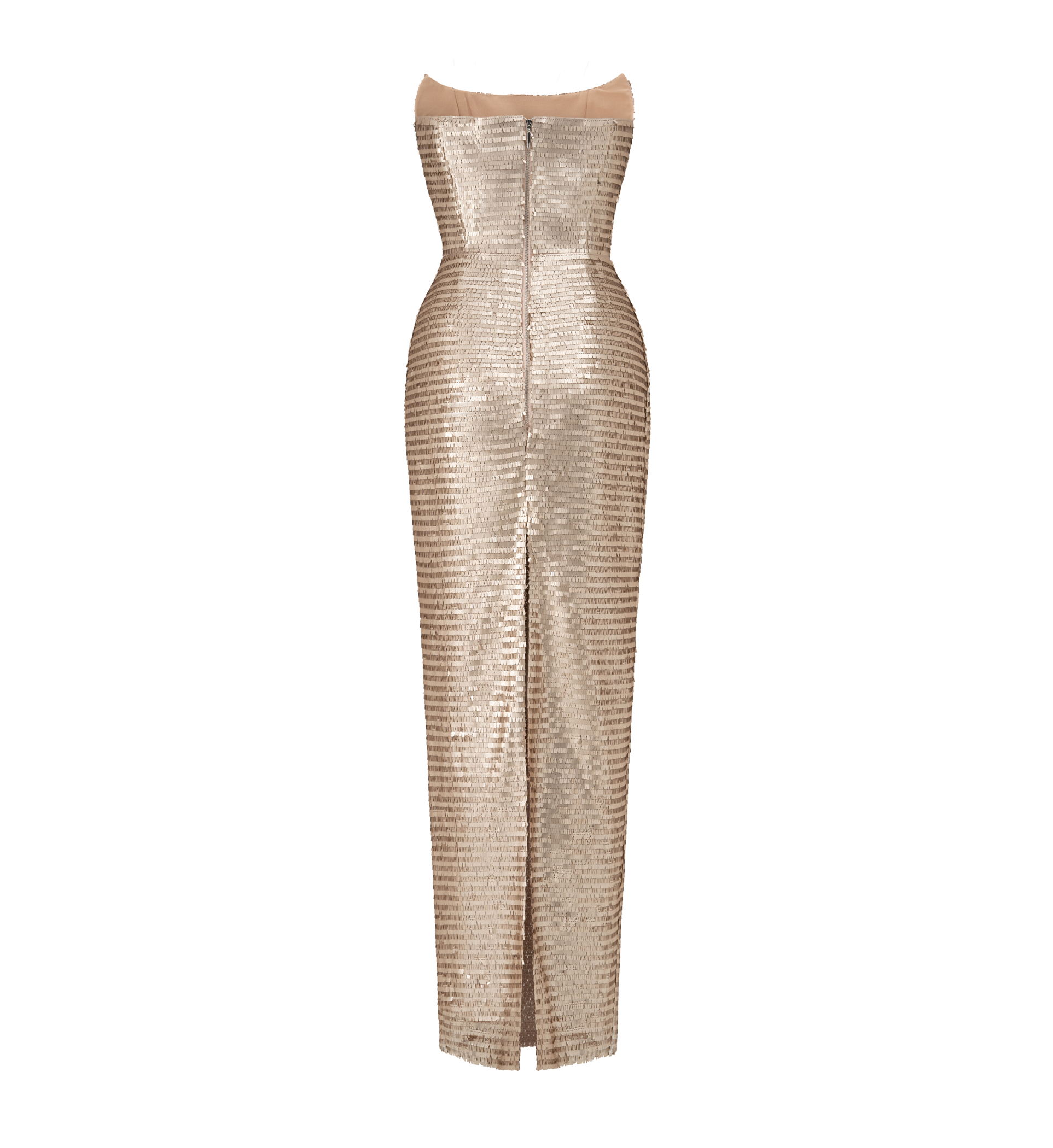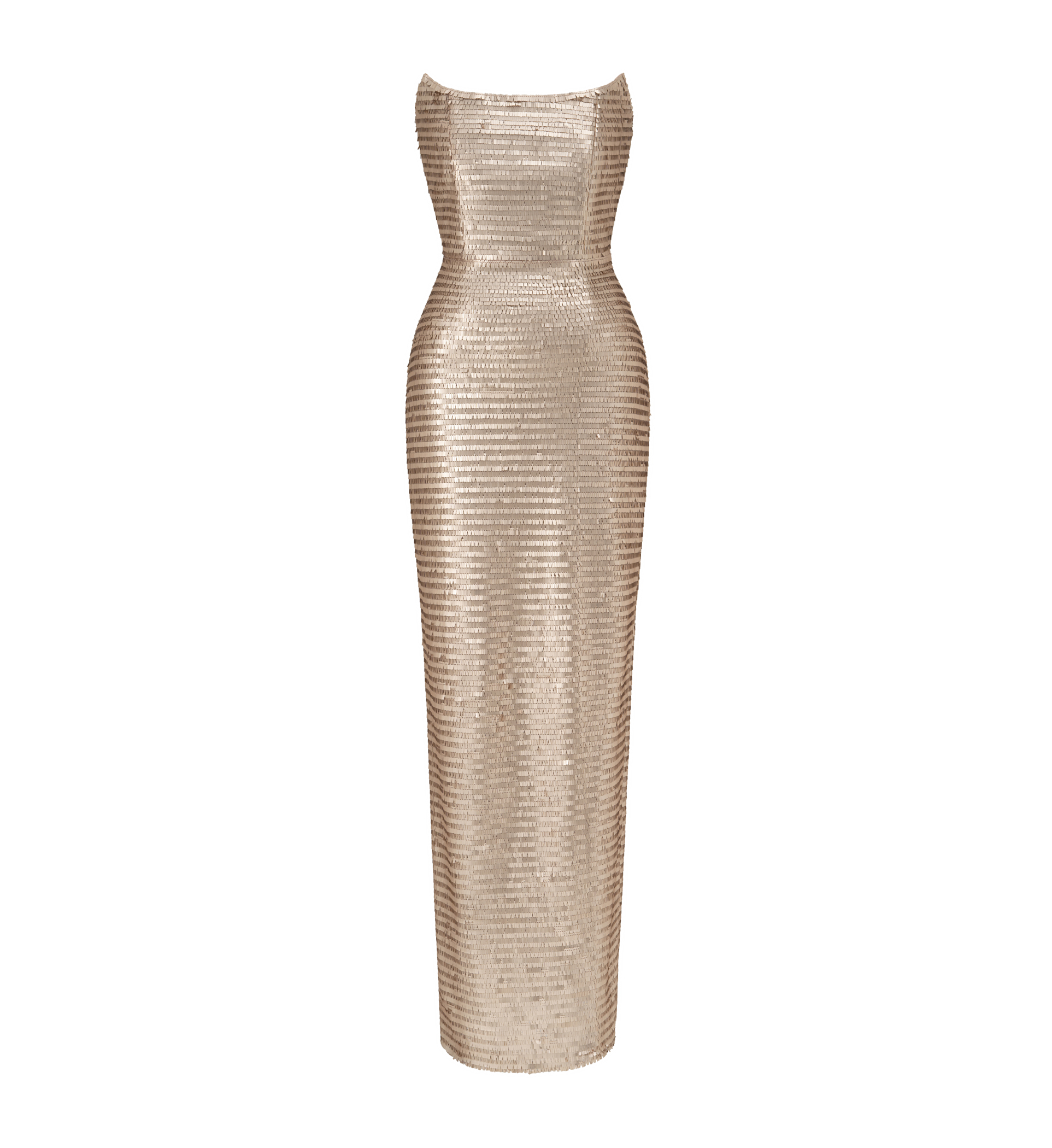 Our version of Golden Hollywood. This is a wow-option for those who are looking for unusual models attracting attention and want to look brilliant in their finest hour. The dress is embroidered with small sequins-scales, creating a "wet" effect. This model will fit perfectly on any figure and emphasize all the advantages. A sparkling dress is a self—sufficient and unpretentious thing in styling. To complete the image, only a suitable pair of shoes is missing. If you want to "calm down" the radiance of the dress a little, you can complement it with a velvet jacket from our collection.