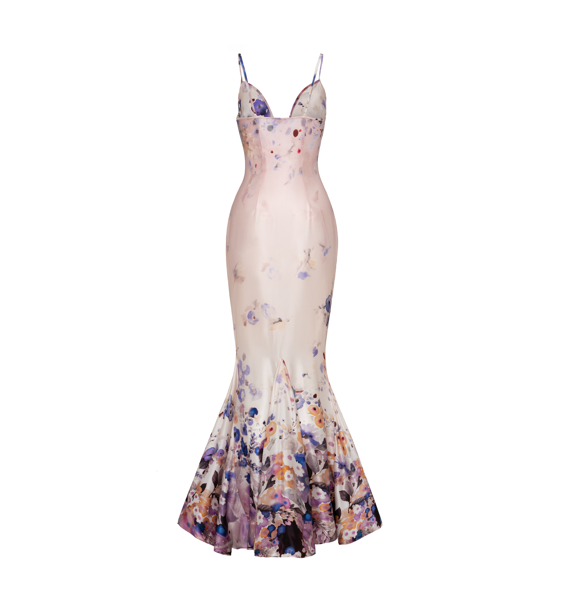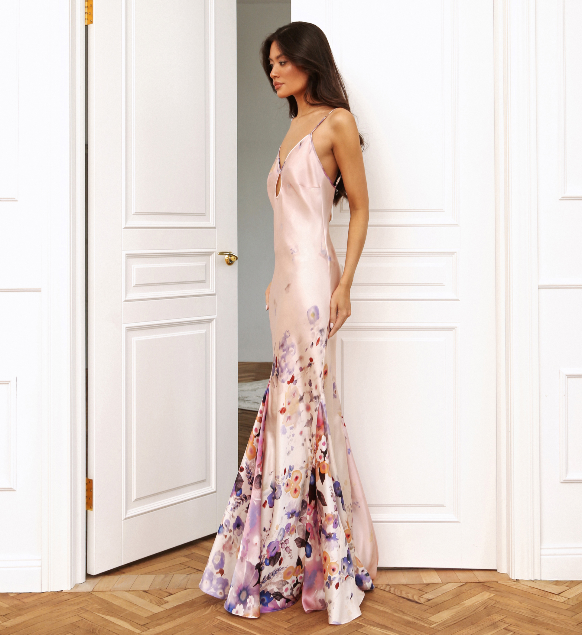 The silk WALTZ OF THE FLOWERS dress with a gradient floral print creates a unique image of lightness and femininity. The weightless fabric wraps around the body, giving incredible comfort and emphasizing sophistication and elegance.