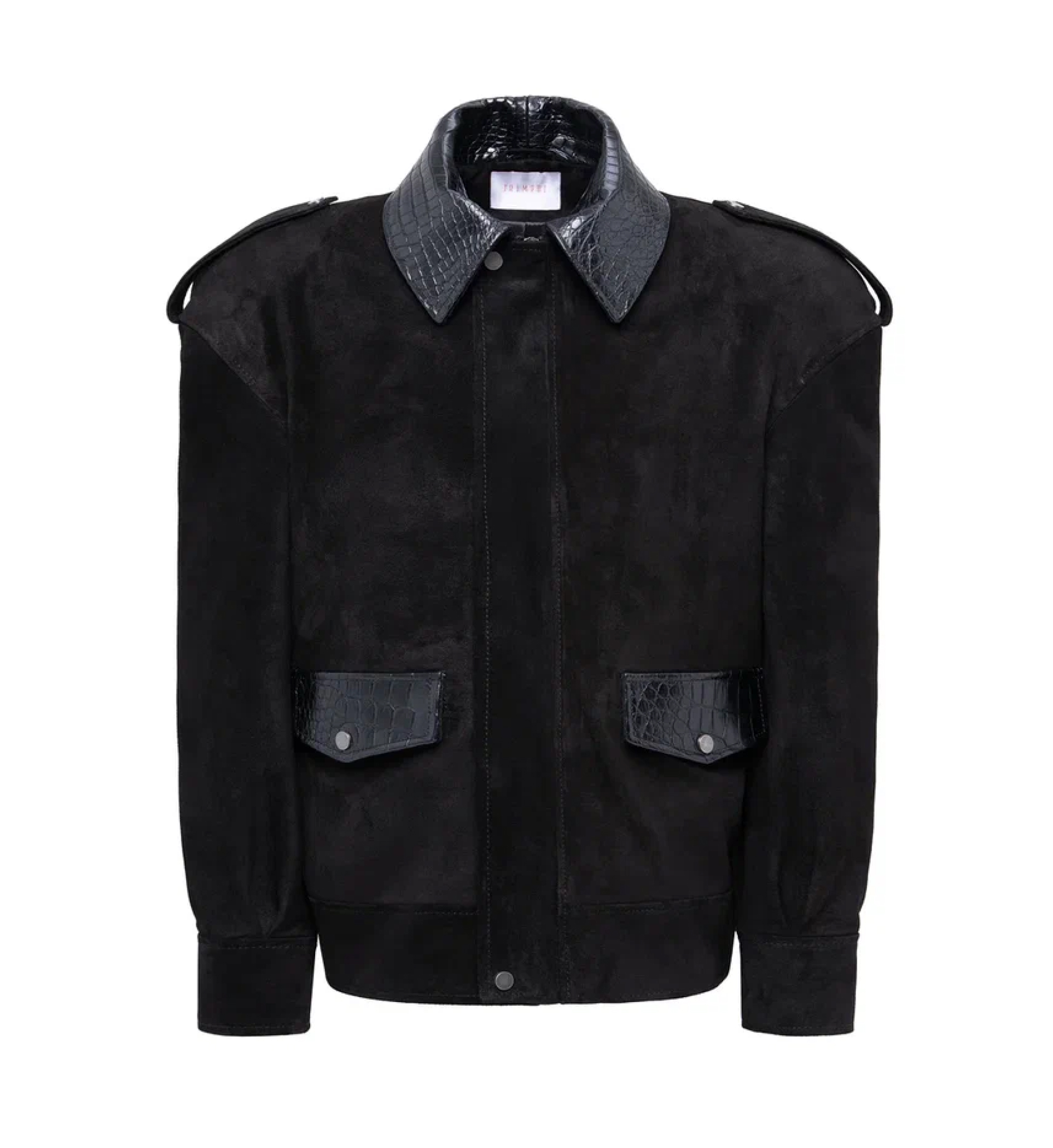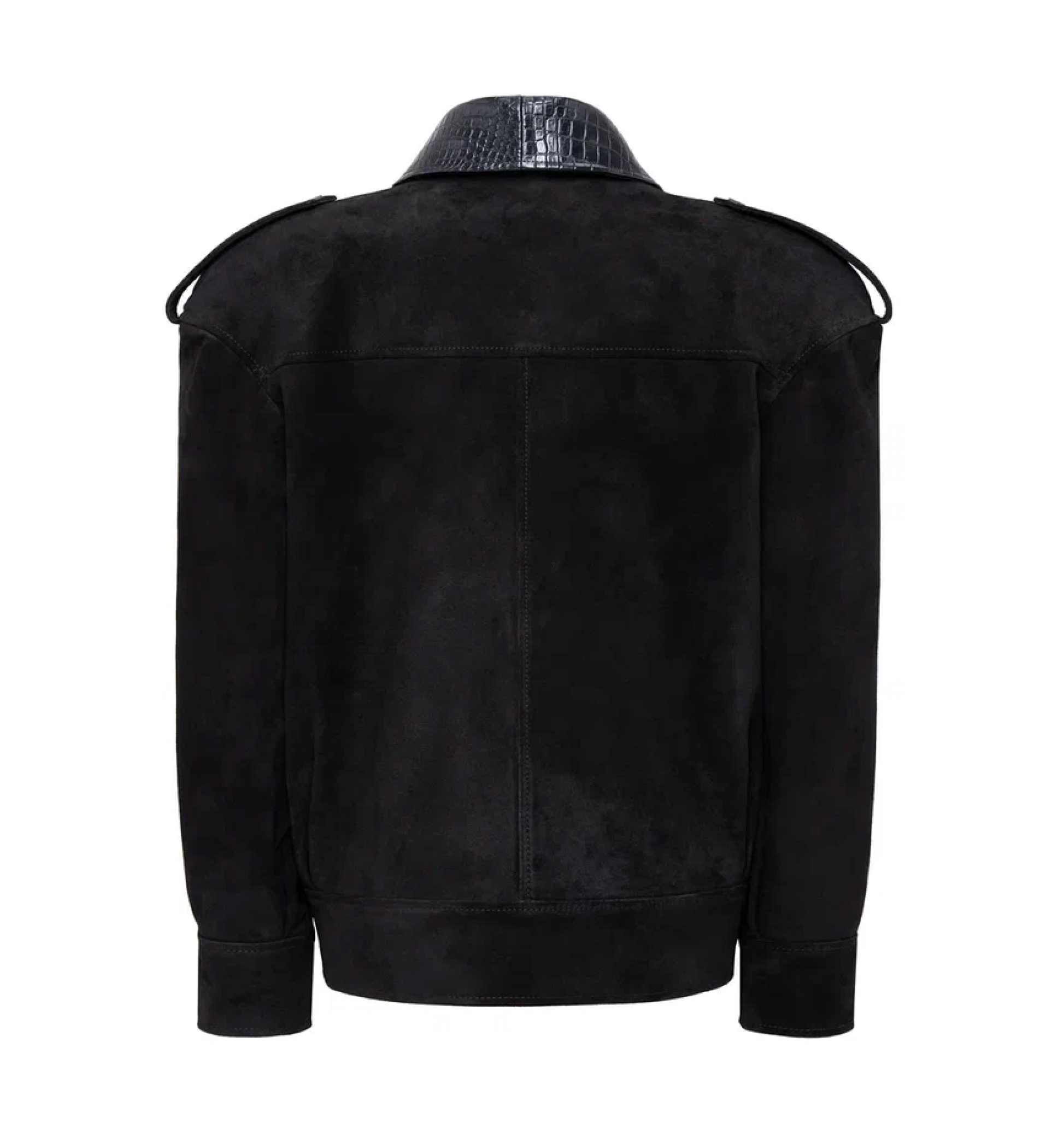 The BLACK DRAGON jacket made of genuine black suede with Italian crocodile leather inserts