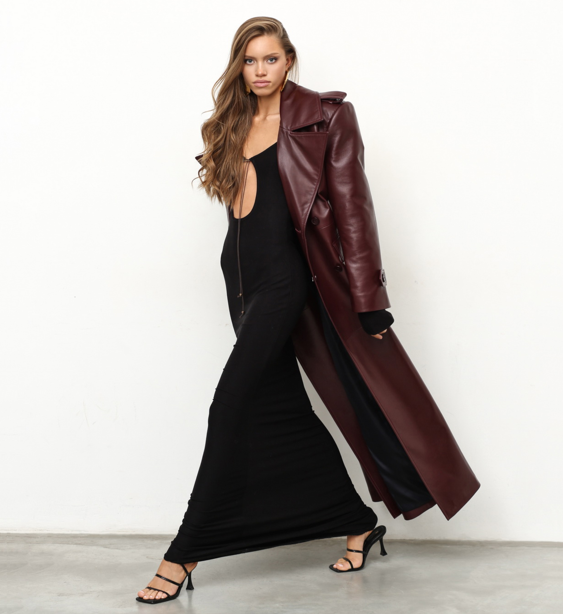The noble deep wine color, which we call Burgundy - in fact, the ideal alternative to the classic black cloak, but in a more intriguing and memorable performance. This is our calling card. We guarantee that in this image it is impossible to remain unnoticed.